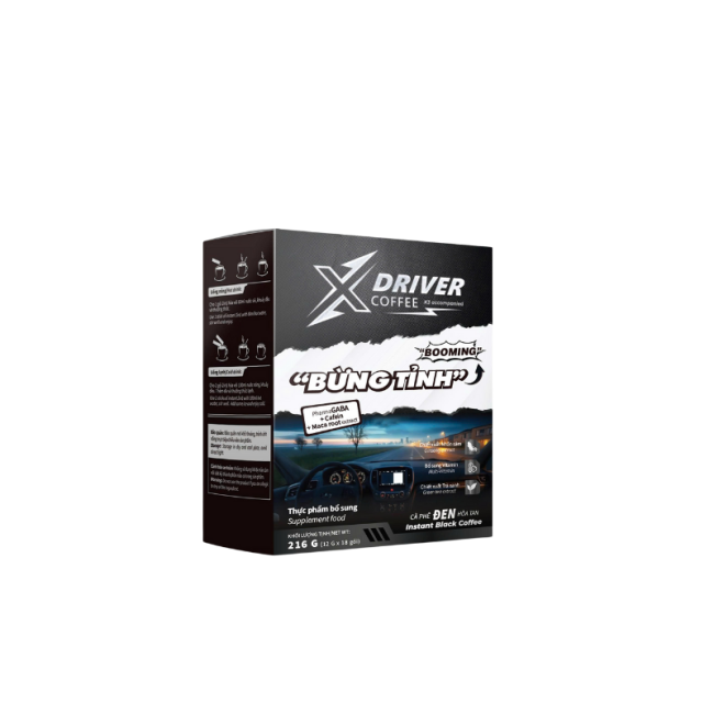 Cà Phê Đen X Driver Coffee Bổ Sung GABA, Trà Xanh, Nhân Sâm, Vitamin 216g (18 Gói x 12g) – Sức Mạnh Tỉnh Táo, Tối Ưu Hiệu Suất
