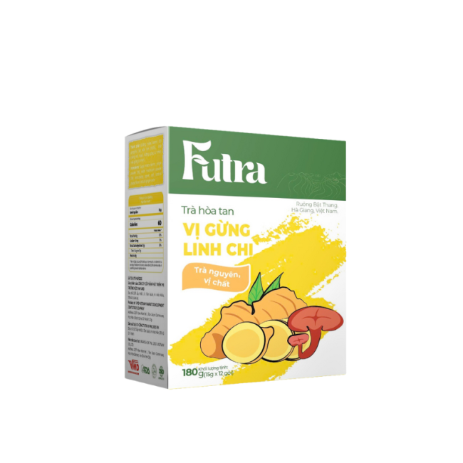 Trà Hòa Tan Futra Vị Gừng Linh Chi 216g (12 Gói x 15g) – Ấm Áp Bồi Bổ, Nâng Cao Sức Khỏe